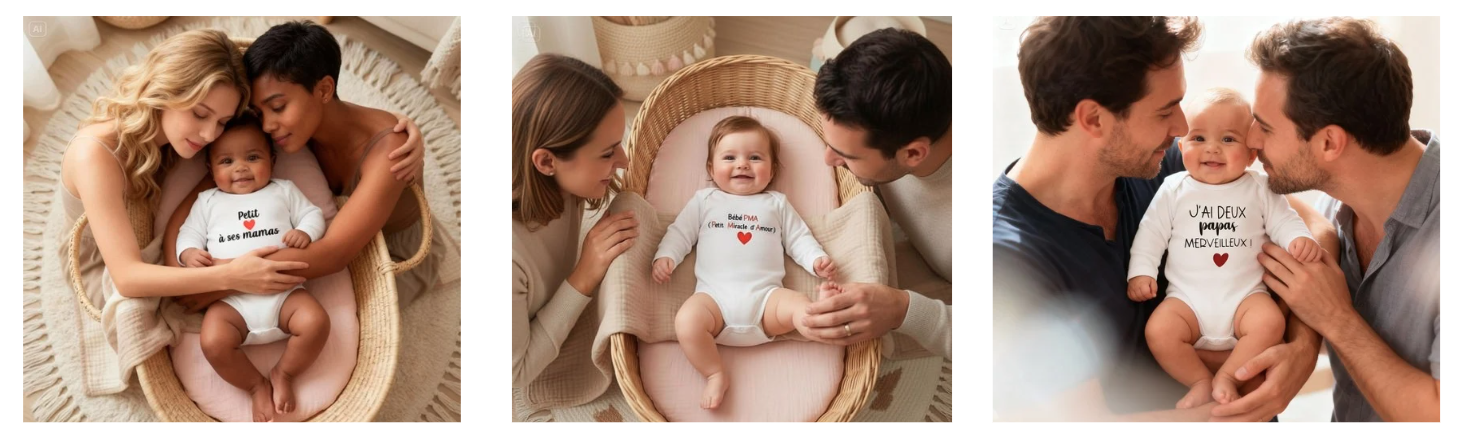 Ce chemin, aussi difficile que rempli d’amour, m’a fait prendre conscience d’un manque : il existait très peu de créations représentant les couples LGBT, les familles inclusives et les parcours PMA.