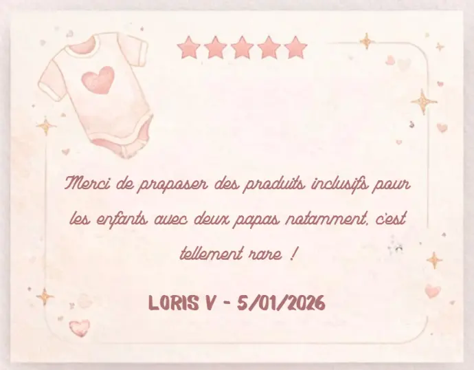 Ce chemin, aussi difficile que rempli d’amour, m’a fait prendre conscience d’un manque : il existait très peu de créations représentant les couples LGBT, les familles inclusives et les parcours PMA.